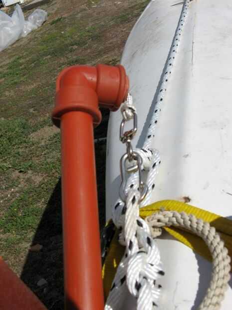 Ahora usted puede poner el carro, las cuerdas (con los ganchos y los "seguros de Remo") en el kayak. Ajustar la cuerda en la punta de la piragua con cuerda ajustable o cable plano. La cuerda ajustable debe "mango" sabe el gancho y la cuerda que tiene las "bolsas de Remo" y termina con el gancho hecho de PVC. Ver las fotos.