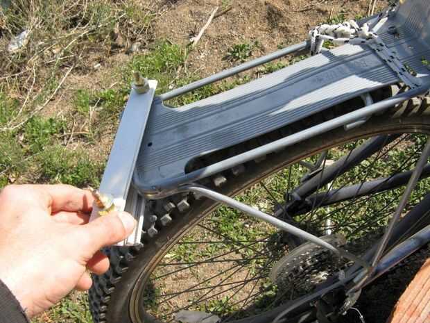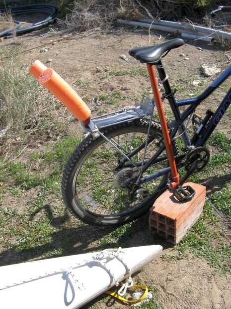 construí este recolector de kayak para un amigo.Pasé una buena parte del tiempo pensando en el enganche. Mi parte favorita es usando un pedazo corto de manguera del calentador automotor para envolver alrededor de la tija de sillín de bicicleta. Fle