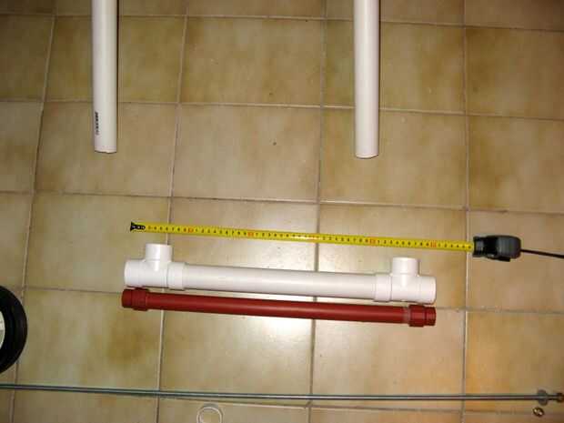 1) cortar el tubo de PVC (el de 40 mm de diametro) servira como el eje del carrito. El largo de este tramo de PVC estara dado paso de el largo en de previamente de por el del tramo del "tubo horizontal" se corto 2. Atencion, tambien hay calcular la contribucion de las dos piezas "T" al largo total!!!!