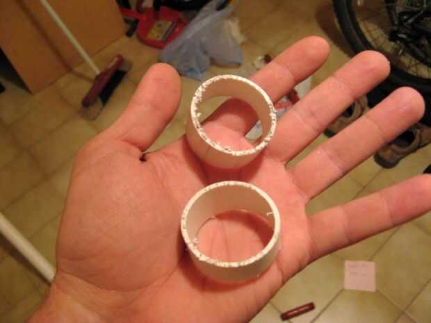4) corte dos pequeños "aros" del tubo de PVC de 40 mm... dicen que 2,5 cm de largo. No necesitan ser regular o buena, se ocultarán!