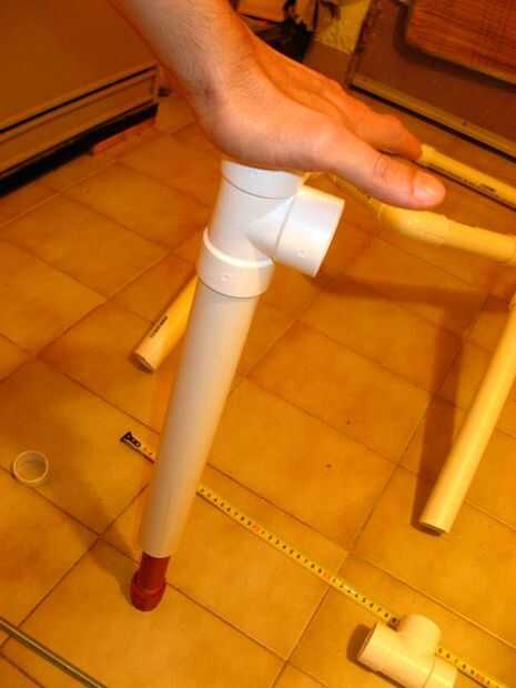 3) los conectores de T en el eje de PVC de 40 mm del pegamento.