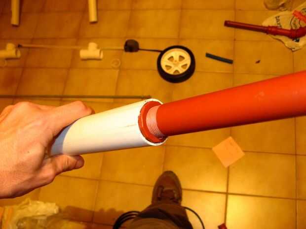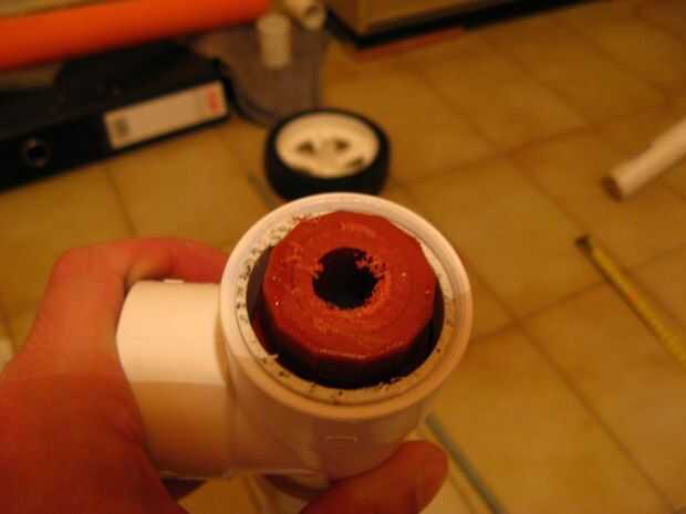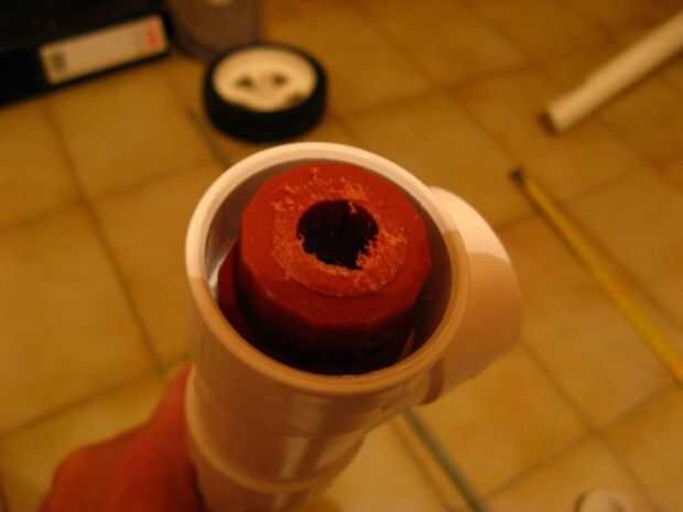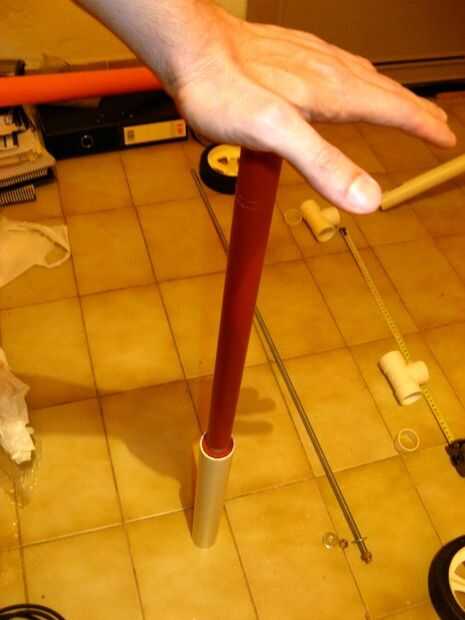 1) tomar el eje de PVC de 3/4" e insertarlo dentro del tubo de 40 mm como muestra la foto. Presionar FUERTE, TIENE entrar! (*)