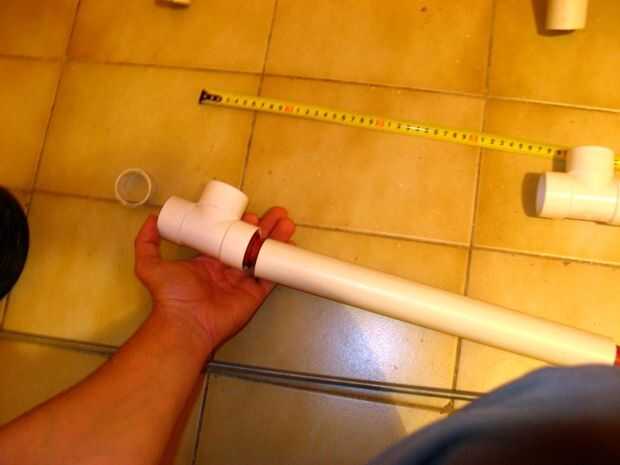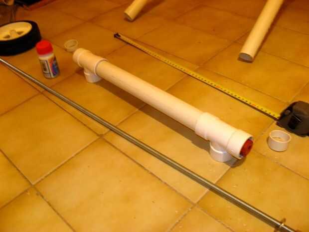 1) tomar el eje 3/4" PVC y ponerlo en el PVC de 40 mm como se muestra en la imagen. Presione duro, tiene que entrar en ella! (*)