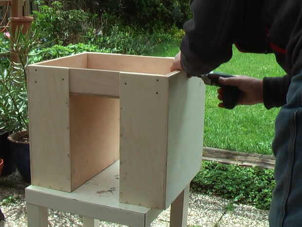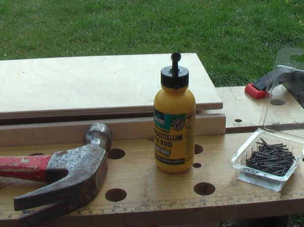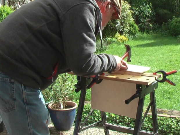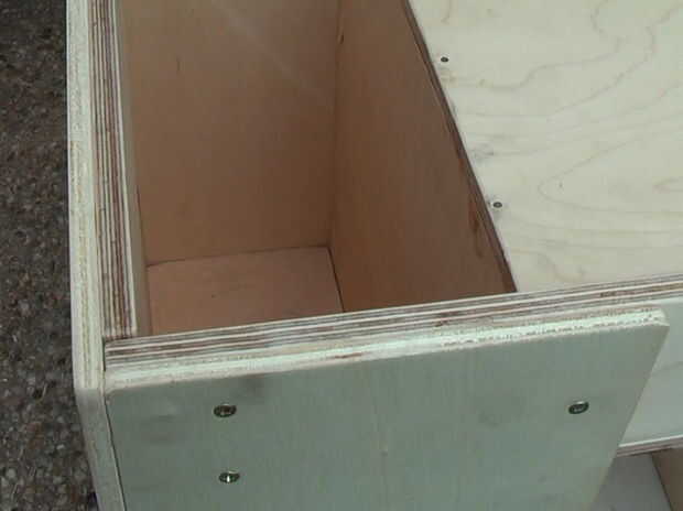 La caja todo es pegada y clavada. Las uñas son 1.6 x 25mm o pulgadas de 0,06 x 0.1 pulgadas. Tenga cuidado, la colocación de las uñas es fundamental porque el ancho de la Junta. El borde superior está conectado con los tornillos, véase el cuadro 5 y 6. El cuadro está listo para las ruedas.