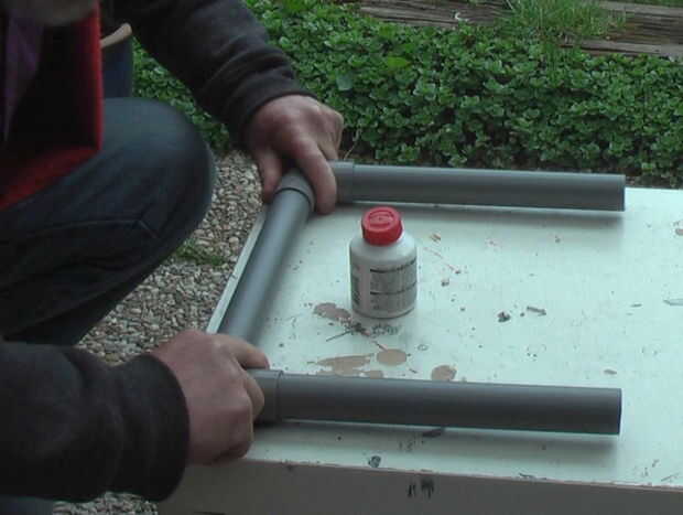 este es un soporte apoyado por un soporte de hierro fundido de 35 lb utilizado por una amplia sombrilla de 10'.  Es más amplio apoyo a una bicicleta para reparación.Paso 1: Esta es la menor extensión de pvc.Paso 2: Esta es la extensión taller de pvc.