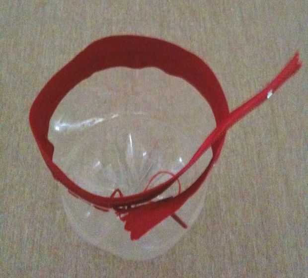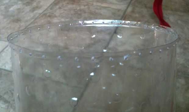 Marca puntos en el borde de cada una de las botellas cortadas... perforar meter la aguja de tejer o calentando una aguja pequeña con una vela y pasando por los puntos.
