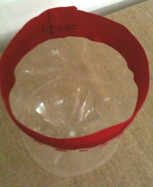 Cortar las botellas primero haciendo un corte por encima de la línea con un cuchillo y sólo se cortan con una tijera cortar cuidadosamente alrededor de la línea it...then (habilidades de corte... demostrar el uso adecuado del cuchillo y tijera)