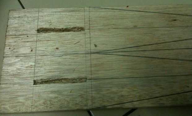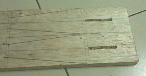 Tome la 3" ancho madera contrachapada (o listón)... Añadir 1/4" a la longitud de la espiga corte y corte.