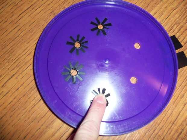 Cortar tiras de cinta aislante ligeramente más larga que el diámetro del hilado apertura e igual que el número de agujeros que ha perforado.