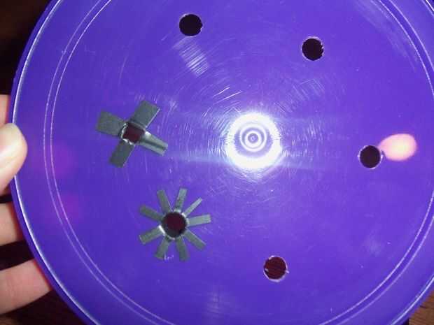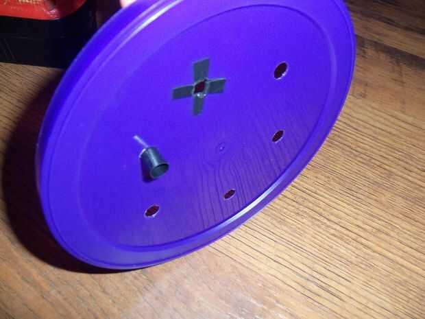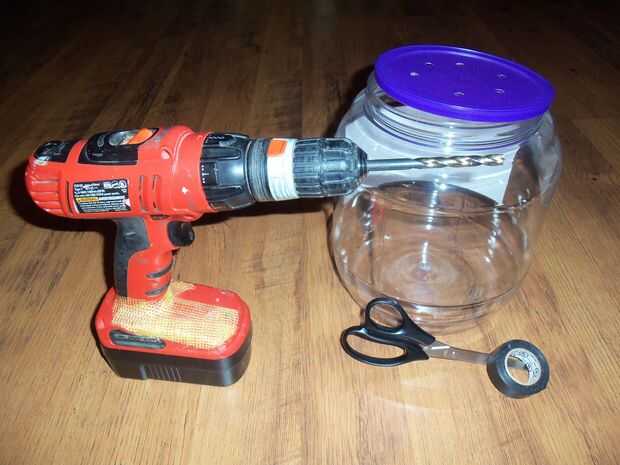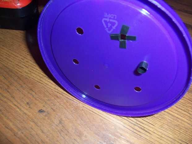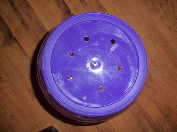 Cepillo y escoger a cualquier rosca de plástico colocada. Usted puede hacer tantas aberturas de hilado como para su uso. Pensar en proyectos actuales, así como posibles proyectos futuros. Elegí 6 para el tamaño de mi contenedor. No hay ningún daño en la fabricación de aberturas extras un par, por si acaso!