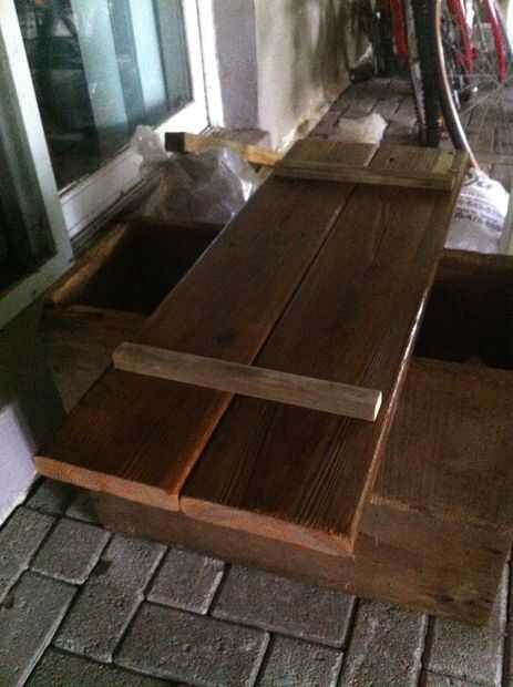 Sólo marque los agujeros con un punzón y perforar (no completamente a través de las tablas) desde la parte inferior. Luego fijar las abrazaderas de 4 tornillos, dos en cada junta en cada extremo.