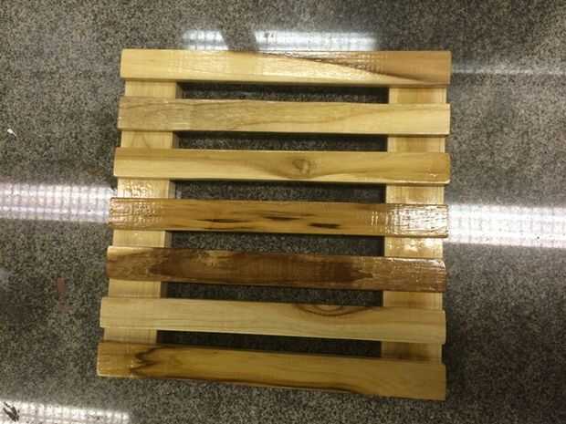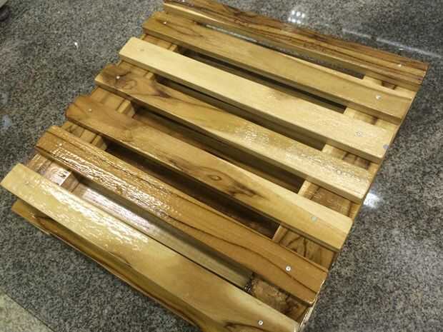 El proceso de montaje es muy simple: colocar los dos listones más anchos 35 cm una de otra y luego las siete tablillas estrechas, 90 ° rotado y uniformemente espaciados unos de otros, en la parte superior.