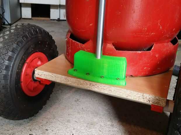 Descongelado para usar de grande y me hizo este carrito por una botella de propano común de 11 kg con un lanzallamas conectado. La botella grande ahora remolcados o empujados fácilmente alrededor de la yarda al lugar donde su necesario. También el soporte impide la inclinación de la botella y mantiene el ventilador en su lugar cuando no se utiliza.