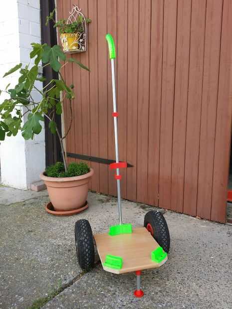 El carrito está hecho de fácil de obtener materiales y piezas impresas 3d que mantienen todo junto sin construcciones improvisadas y borracho. Las partes no están diseñadas para obtener el Red Dot Award y pueden verse el coche Picapiedra como. Pero seguro que lo suficientemente bueno como para andar con el carrito en el patio, las calles, las fronteras del país y el césped.