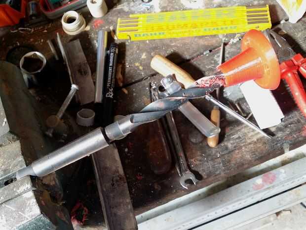 Los orificios para el tubo no pueden caber en el primer intento. En este caso que perforar a mano cuidado con una broca fijada en mi llave.