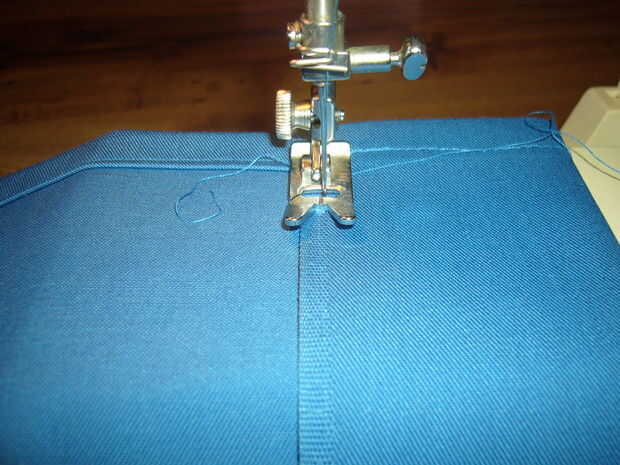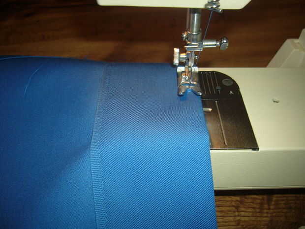 Quitar carrito de sofá de sofá y presione la costura de dobladillo. Coser a lo largo de ambos bordes de doble y de prensa.