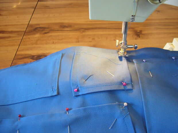 Una vez que los bolsillos están acabados en pieza principal endecha plana y decidan donde quieres que tus bolsillos. Comenzando en el extremo inferior y su forma de trabajo para arriba.