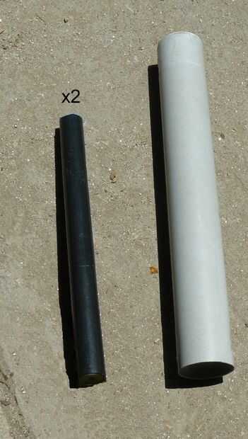 Cortar 1 trozo de tubo de 75mm. Para mi kayak es 540mm de longitud. Corte 2 piezas de tubo de 37mm, uno para cada rueda. En este instructable son 420mm de longitud.
