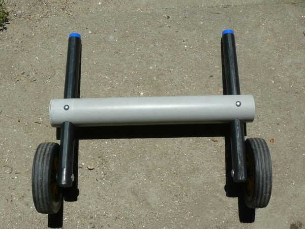 M6 x tornillos de 80mm están ubicados como se muestra en la figura a los tres tubos. La distancia del agujero es de 200mm de lado de la rueda, y debe hacerse perpendicular al orificio de 8mm. Da 220mm del tubo que pase por echar por tierra los agujeros en el kayak.