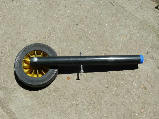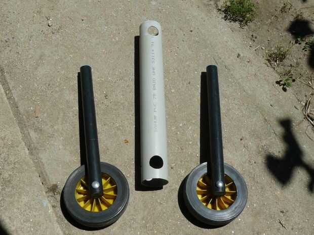 A 25mm del lado del tubo de 37mm, hacer un agujero de 8 mm. uso M8 x 110 tornillos para sujetar las ruedas a las tuberías.