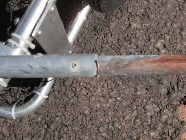 La barra de remolque o boca hace el resto de la pieza de diez pies de conducto. Es la única parte que necesita herramientas especiales para el ya que necesita estar doblada en forma de 'Z' lazy. Sin embargo, si usted tiene una atractiva novia o esposa, que ella tome a un fontanero y probablemente se ponen unas curvas rápidas en gratis! Inserte un trozo de tubo de una pulgada (o lo que se adapta en su trozo de conducto) en cada extremo y pop los remache en lugar. Inserte la barra en la otra pieza de conducto y perfore un agujero completamente a través de los tubos de un perno o perno y conductos. Aplanar el otro extremo martillando el tubo de cobre plana y perfore un agujero para la fijación a la moto. Yo sólo uso un mosquetón para sujetar a un bastidor trasero o el asiento y si quieres algo más elegante puede conectar a la tubería de cobre o el tubo sí mismo.