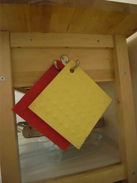 También puede agregar algunos detalles adicionales, dependiendo de sus necesidades. En el lado derecho de mi carro, por ejemplo, he instalado un gancho en el que puedo colgar mis agarraderas.