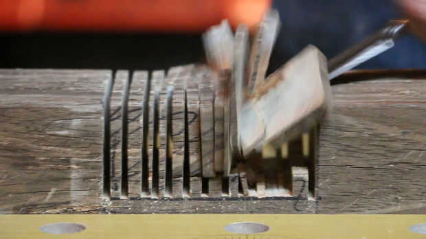 Para la muesca conjunta, en primer lugar, ponga su sierra circular o sierra de mesa profundidad de la hoja a la mitad la profundidad de la Junta. A partir de la lengua, haga su primera marca 2" desde el extremo posterior de la Junta. Utilice el otro 4 x 4 como patrón para determinar el ancho de la ranura de su segunda marca. Luego con cuidado cortar el principio y el final de la ranura, detener la sierra totalmente a precisamente la hoja. Con esas partes precisas acabadas, puede vio lejos la madera entre las dos marcas. Tampoco vio un montón de ranuras que puede cincele más adelante o completamente vio a la madera. Ambas maneras de trabajan, aunque B opción toma más tiempo y es más polvo.