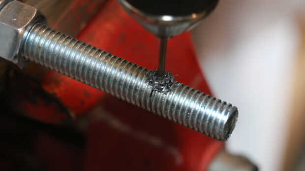 A continuación, perfore un agujero a través de su cerrojo de una chaveta. Utilizar un montón de aceite y tómese su tiempo.