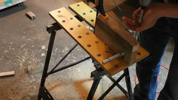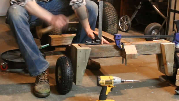 Vuelva a instalar la arandela de la rueda y la rueda con su pasador. Ahora usted puede atornillar las abrazaderas de la tapa de extremo (usted podría han a pre taladro estos) y atornille el extremo cap/apoyos en el marco. Es mejor libra los conjuntos de eje en el bastidor con un mazo, a continuación, establecerlo en la tierra a nivel hacia fuera antes de atornillarlo todo juntos para bien.