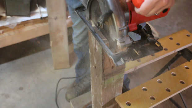 Marcan el final de la lengua de marco en tercios. (Jimmy DiResta tiene un gran truco para ello). Continuación, utilice una sierra circular o serrucho para cortar ranuras en las marcas de terceros. (Si se utiliza la sierra circular, tenga cuidado! Mi sierra de combate me un poco en el grano final.)