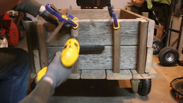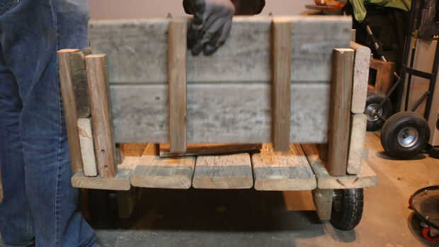 Medir la altura final de las paredes, luego cortar 8 tiras juego de 2 x 2. Dos se utilizará en el frente, al ras con el borde frontal de la caja. Taladro y tornillo de dos tableros de pared en el interior de los 2x2s para hacer la pared frontal de la caja. Cuatro se unirá en la parte posterior para un canal de la puerta, con dos atornilladas al ras con el extremo de la caja y los otros dos listo lo suficientemente hacia adelante para hacer un vacío que es un pelo más ancho que el ancho de las tablas de la pared. Finalmente, caer en las dos tablas de puerta trasera y taladro y atornillar el 2x2s restante en los puntos 1/3 a lo largo de la longitud, creando una puerta fácilmente extraíble. (Heads up: el ancho puede ser diferente entre la parte delantera y la espalda. Asegúrese de medir ambos.)