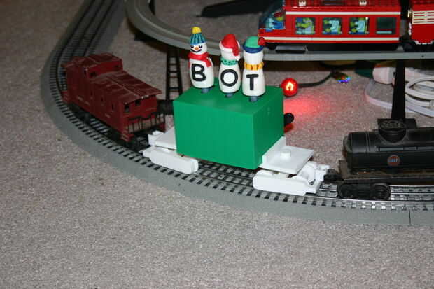 Este es el carro de ferrocarril número tres en lo que (espero) será una serie de diez, uno publicado cada dos semanas hasta Navidad. Este O calibrador de coche (ruedas, eje, acoplamiento y cama son todos 3D plástico impreso) es parte de un tren de la