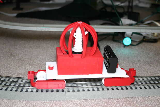 Este es el carro de ferrocarril número cinco (el motor) en lo que (espero) será unserie de diez, uno publicado cada dos semanas hasta Navidad. Este O medidor de motor (ruedas, eje, acoplamiento, engranajes y cama son todos 3D plástico impreso) es par