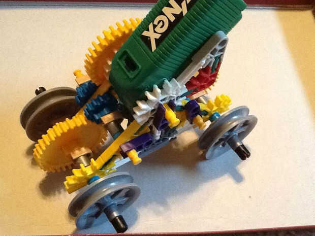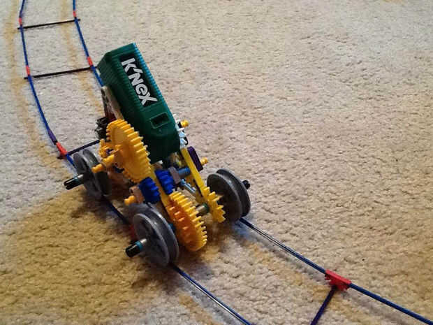 Después de ver la popularidad de las máquinas de la bola de K'nex, pensé que sería divertido para construir mi propio artilugio K'nex con rieles. Lamentablemente, no tengo suficiente K'nex a la mano para construir una máquina de la bola loca, pero tengo los motores, así que decidí hacerlo en su lugar. Es un carro sencillo, un motor que se monta en los carriles K'nex.