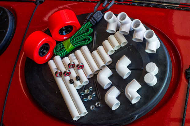 Junta de skate 2 ruedas con rodamientos y separadores. He utilizado longboard ruedas 72mm y 90mm. El taller la rueda mejor que ruede sobre obstáculos.