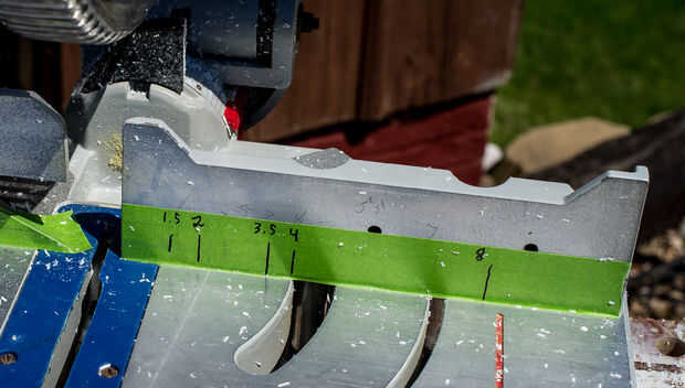 Corte el tubo de PVC con una sierra de energía fina dentada, una sierra para metales o incluso un cortador especial para tubería de PVC. Tengo inglete vio así que la usé. Velocidad de corte y medición coloqué cinta de pintor en la sierra e hicieron marcas en las longitudes que requiere.