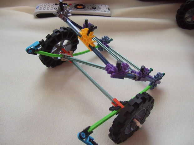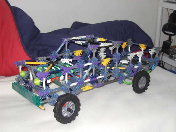Este carro es mi intento de construcción de un carro RC Lego totalmente funcional. El objetivo era construir todo el funcionamiento mecánico de piezas de Lego con poca o ninguna modificación. El tren de la impulsión de este vehículo es una transmisió