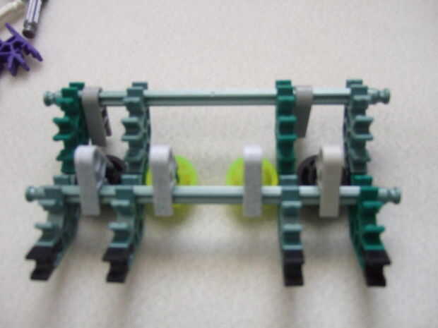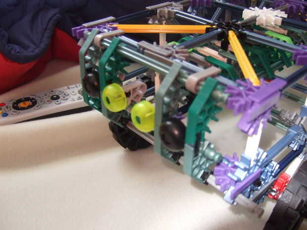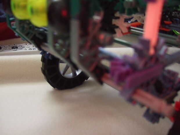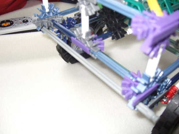 Este carro es mi intento de construcción de un carro RC Lego totalmente funcional. El objetivo era construir todo el funcionamiento mecánico de piezas de Lego con poca o ninguna modificación. El tren de la impulsión de este vehículo es una transmisió