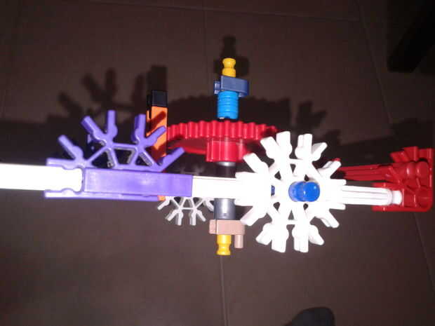 esta es un arma de lanzamiento de rueda. Es mi primer instructable. Cualquier comentario constructivo es bienvenido.Paso 1: La parte posterior de la pistola Esta es la parte trasera de la pistola. El grupo de conectores blancos es el mango.Paso 2: El