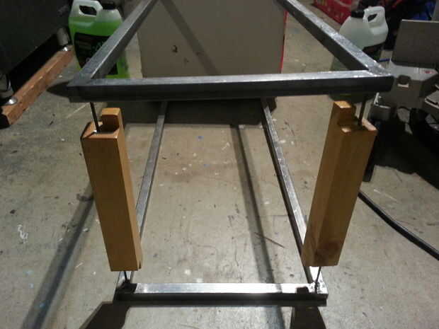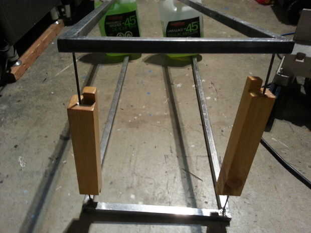 3. Martillo con cuidado los arcos simultáneamente en las barras de madera, se podría utilizar un par extra de manos para este paso para mantener las piernas en el aire. No te preocupes si las plazas madera no totalmente acurrucadas en los rincones, usted conseguirá la oportunidad de golpear en su lugar;