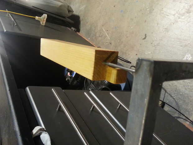 Dio este paso mucha previsión porque no quería que ningún tornillo para mostrar y los listones de madera inicialmente iban a ser los apoyos laterales primarios. Se ha cambiado el diseño agregando una barra transversal en la parte superior, uniendo los dos arcos. Esto crea tensión en la parte superior y mantiene perfectamente los listones de madera en su lugar. Es muy importante el orden de montaje: