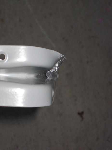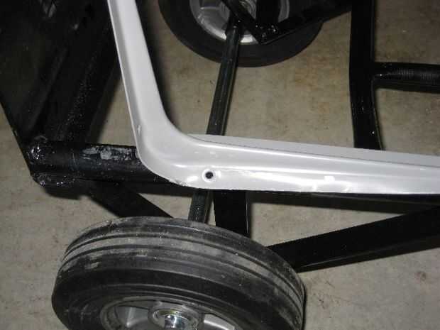 Para dar forma a los soportes de estante de utilidad según sea necesario, colocó la carretilla y comenzó entonces a martillo en el soporte de la forma que a la forma del tubo de la carretilla de mano. Pasé tal vez 15 minutos en total martilleo hasta las piernas más largas de los soportes de utilidad bastante agradable alrededor de los tubos de la carretilla de mano.