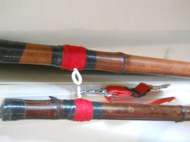 En este momento envolver el nob de extremo del bambú en cinta de PVC para evitar raspar y aumentar los niveles de confort.