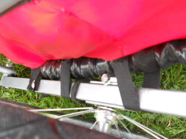 -Una vez que los polos son incluso, ajuste las correas de asiento, y sus postes se esté montados.