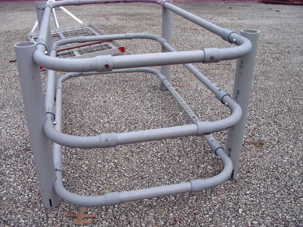 Los miembros de riel son todos conduit pvc de 1". Estos son tramos rectos y prefabricada de esquinas redondeadas. Las secciones de radio tienen un un extremo reborde abocinado, que recibe las secciones rectas. Donde no se proporciona ninguna llamarada, las secciones del conducto están conectadas con los acopladores. Conexiones fijas están unidas con pegamento para pvc.