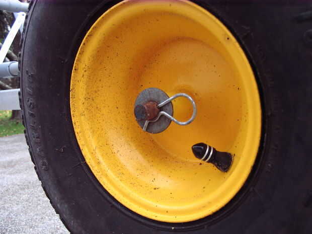 El árbol fue perforado para aceptar una espiga en el extremo. Luego corté un trozo de tubo de aluminio que actúa como un espaciador entre el marco y la rueda. Esto era necesario para obtener la holgura necesaria del marco. Una arandela grande fue instalada entre el espaciador y eje y otra arandela en la parte exterior del cubo entre el eje y pasador de retención.