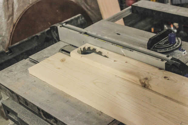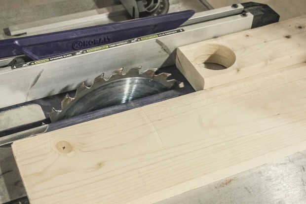 Cortar 2 x 4 a lo largo de la línea de centro para hacer dos carriles