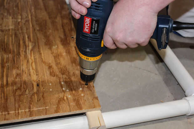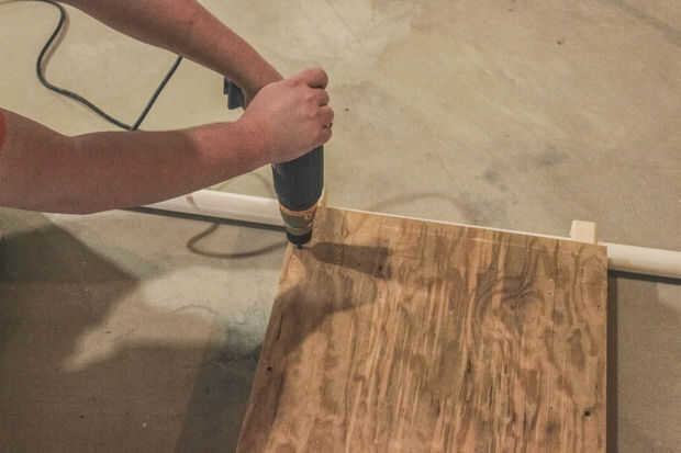 Montar la madera contrachapada en 2 x 4 usando los tornillos de madera