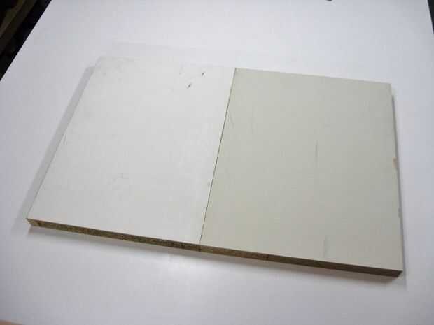 Tenía dos pequeños pedazos de viejas puertas de núcleo sólido que queda de un proyecto anterior, y esto es lo que usé. Primero fueron recortados según sea necesario y luego pegado junto con abrazaderas para formar una pieza sólida. El tamaño final era 38 1/2" por 25" (completado con el ajuste en su lugar como se ve en la introducción, la parte superior es 40" por 26 1/2", y el carro es 30" de altura).