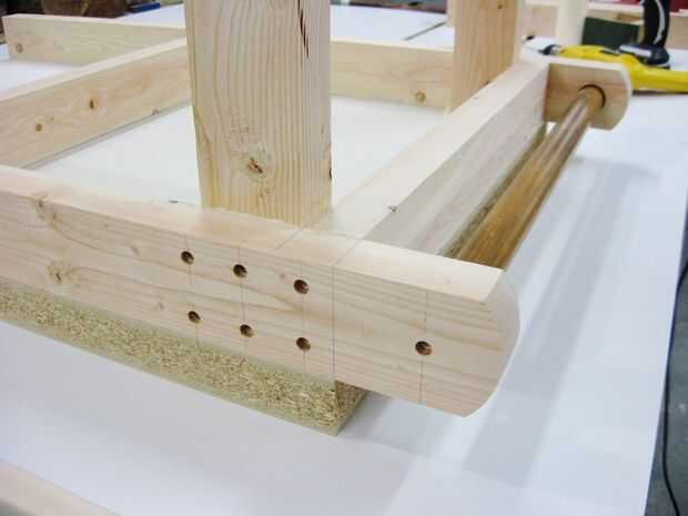 Todas las tablas fueron sujetadas con pegamento y 2 1/2" tornillos para madera en los agujeros pretaladrados y avellanados.